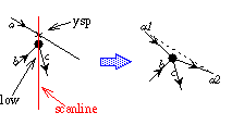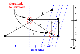 The end result is a bigger graph, since links are added to it. All of this is happening during the process of scanning the graph with a scanbeam. At the moment a link is removed from the scanbeam (at the most to the left node of this link, which is the _low of the current scanbeam), the link is checked for interscetions.