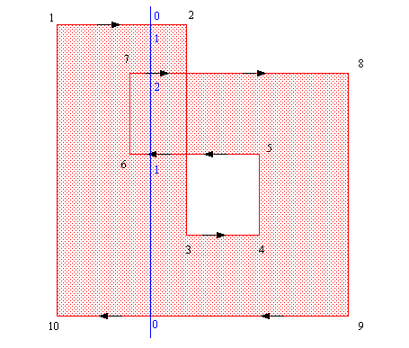 In this method the direction of the segments, going left or right, is not important. Also the order in which the polygon points/segments are drawn is not important.